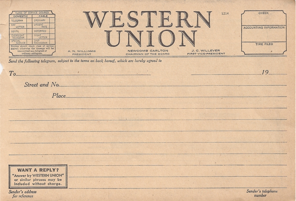 Write a telegram . . .